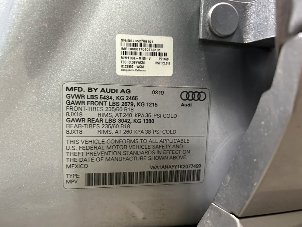 VIN number WA1ANAFY1K2077499