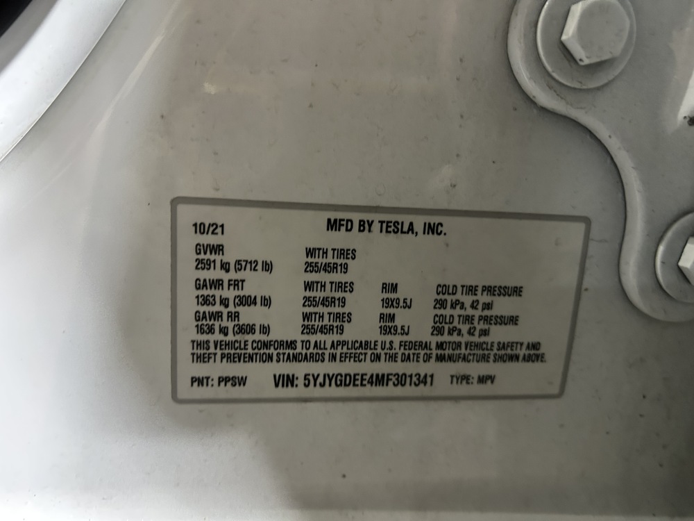 Description 2021 TESLA MODEL Y