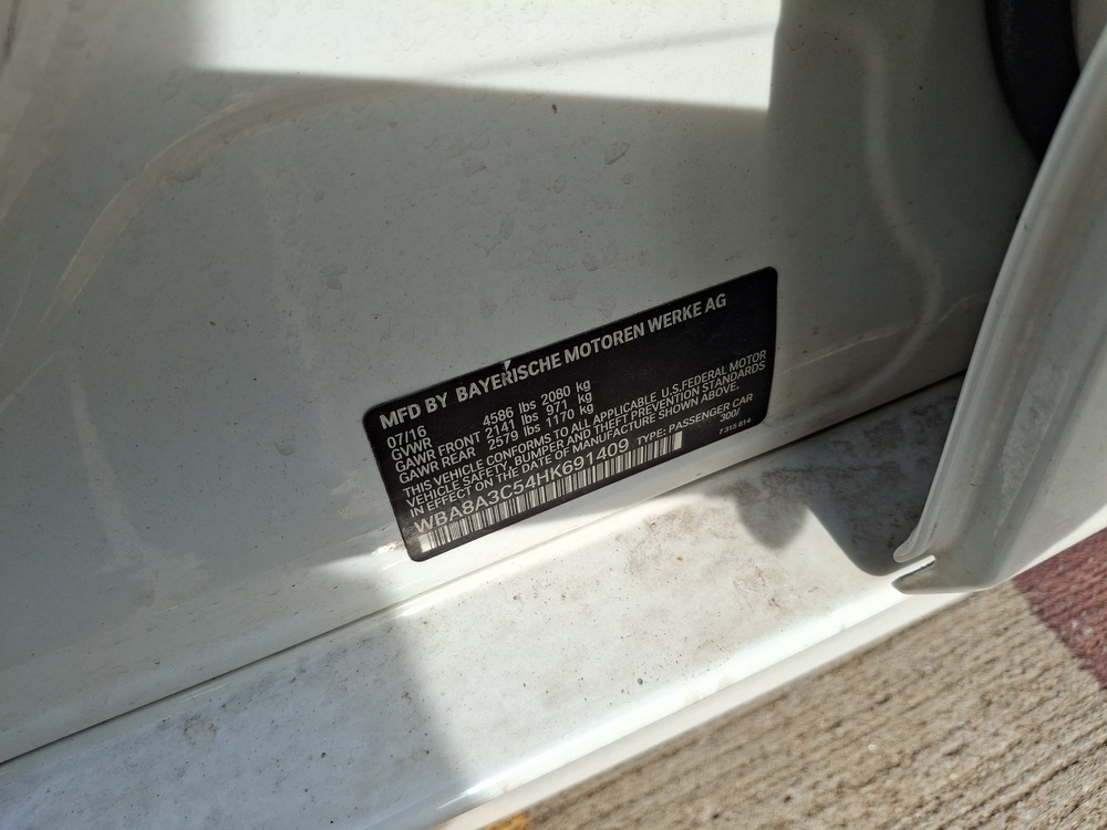 VIN number WBA8A3C54HK691409