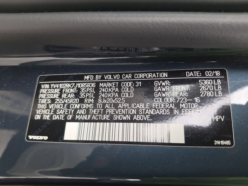 Description 2018 VOLVO XC60