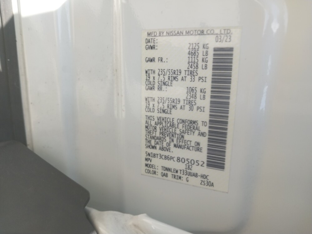 VIN number 5N1BT3CB6PC805052