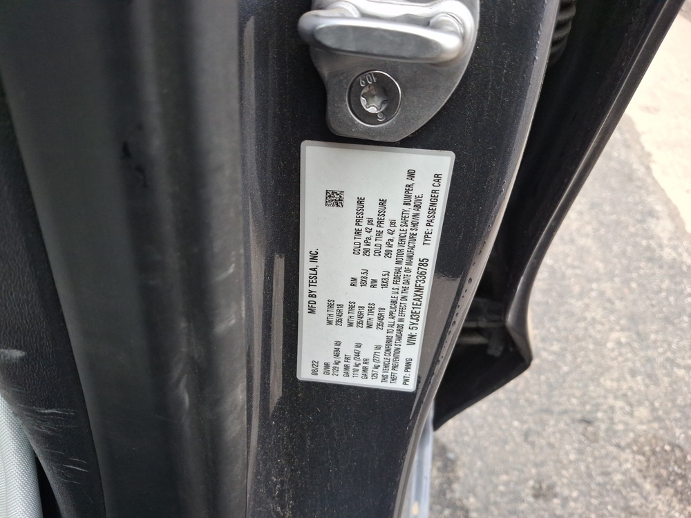 VIN number 5YJ3E1EAXNF336785